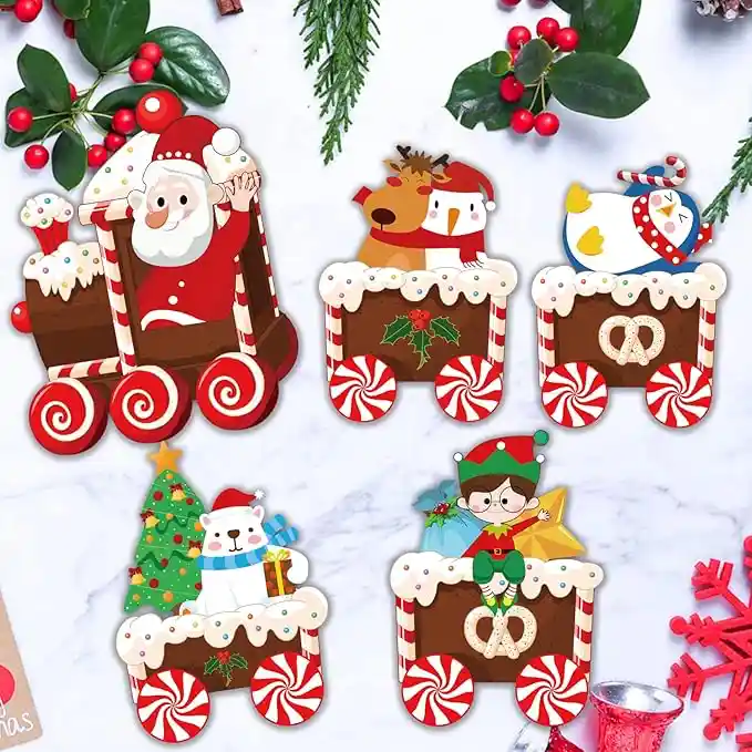 VALUABLE PACK:The Christmas train decoration has 5 carriages with a Christmas tree, snowman, penguin, elk and kinds of Christmas gifts,
