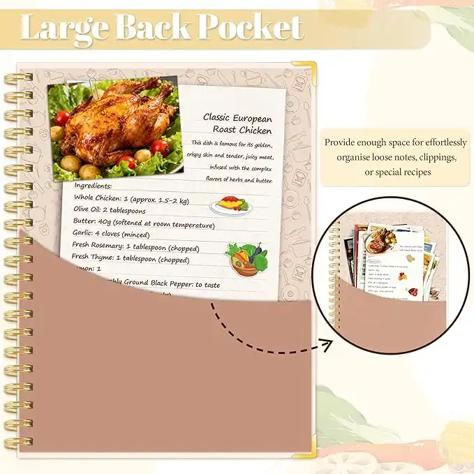 GuassLee Blank Recipe Book to Write in Your Own Recipes, 8.5″x11″ Blank Recipe Notebook for 140 Recipes, Personal Cookbook Hardcover Journal with Tabs, Stickers & Pocket, Beige